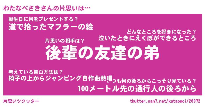 | ヘコむあだ名 | 『わたっふぃ~』『豆乳』『わたお』 |