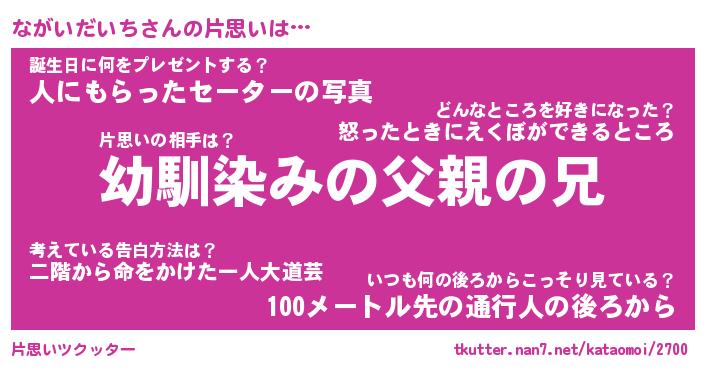 | 2回繰り返すあだ名 | 『ながなが』『なながが』『ねちねち』 |