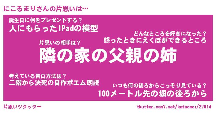 | 男性向けラノベタイトル風あだ名 | 『にこるまりの憂鬱』 |