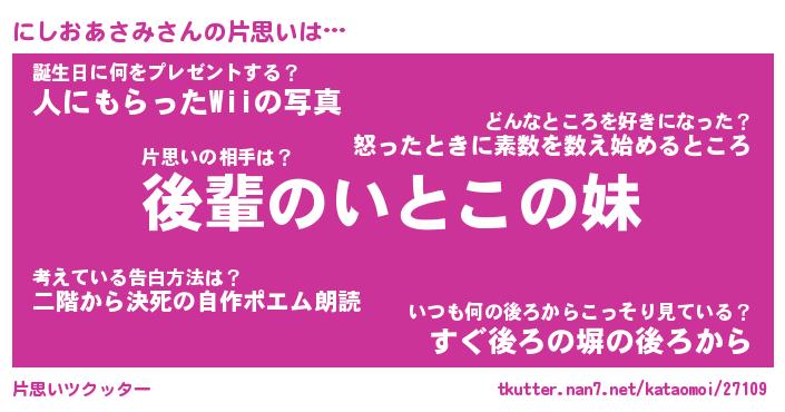 | ポケモン風あだ名 | 『ニシチュウ』『ニシオダネ』 |