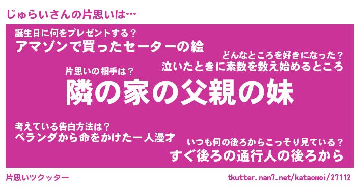 | 胡散臭い通販商品みたいなあだ名 | 『モテモテ間違いなしブレスレット…その名も「じゅらい」』 |
