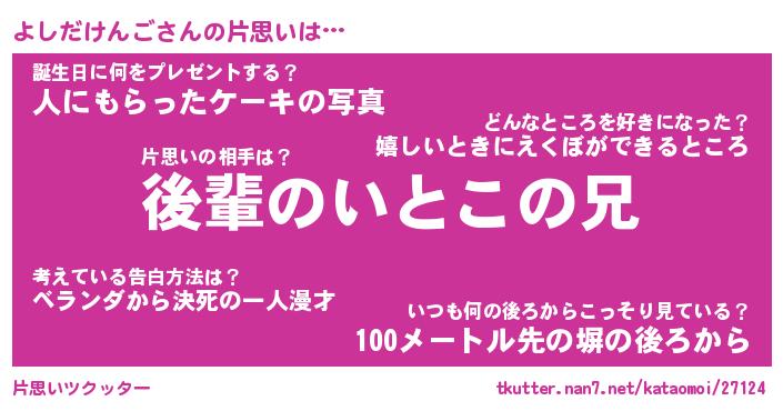 | 伝説のあだ名 | 『封印されしスナイパーよしだけんご』 |