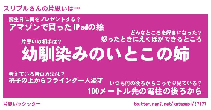 | 意味不明あだ名 | 『ペロリンスリプル』『永久保存スリプル』 |