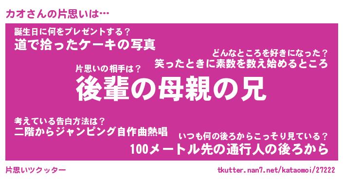 | ヘコむあだ名 | 『カオふぇ~』『牛乳』『カオっ子』 |