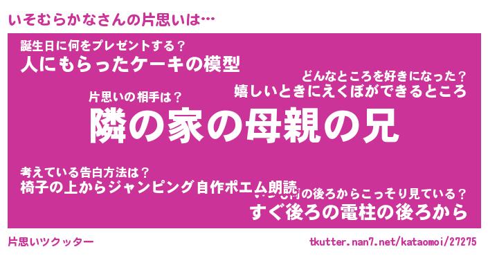 | 男性向けラノベタイトル風あだ名 | 『いそむらかなの憂鬱』 |