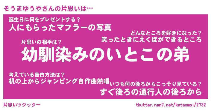 | 男性向けラノベタイトル風あだ名 | 『そうまゆうやの憂鬱』 |