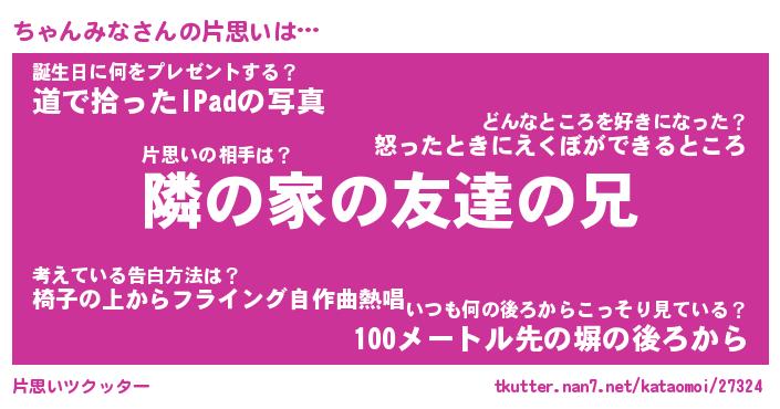 | ヘコむあだ名 | 『ちゃっふぃ~』『つくし』 |