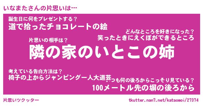 | 男性向けラノベタイトル風あだ名 | 『いなまたの憂鬱』 |