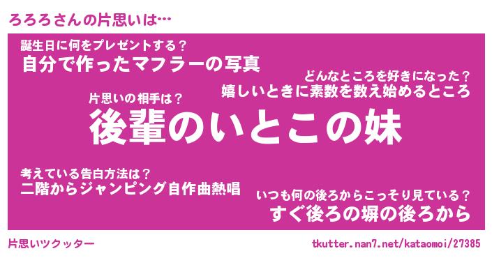 | ヘコむあだ名 | 『ろろにゅー』『牛乳』『ろろっちょ』 |