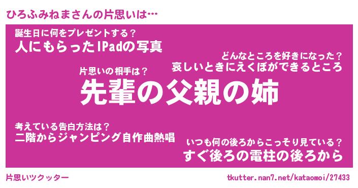 | 胡散臭い通販商品みたいなあだ名 | 『モテモテ間違いなし水晶球…その名も「ひろふみねま」』 |