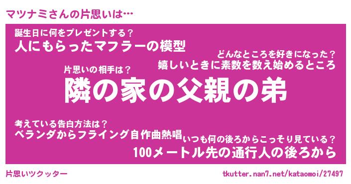 | 男性向けラノベタイトル風あだ名 | 『マツナミの憂鬱』 |