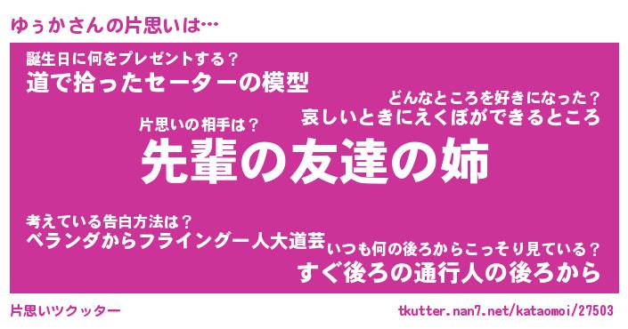 | 胡散臭い通販商品みたいなあだ名 | 『モテモテ間違いなし霊験あらたかなお札…その名も「ゆぅか」』 |