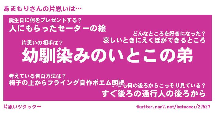 | 胡散臭い通販商品みたいなあだ名 | 『必ず成功する霊験あらたかなお札…その名も「あまもり」』 |