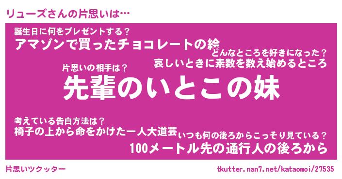| 意味不明あだ名 | 『ペロリンリューズ』『永久保存リューズ』 |