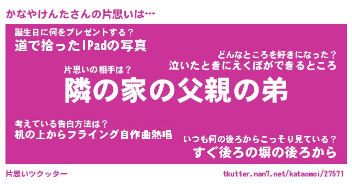 | 胡散臭い通販商品みたいなあだ名 | 『モテモテ間違いなし水晶球…その名も「かなやけんた」』 |