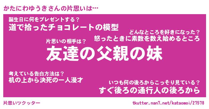 | 胡散臭い通販商品みたいなあだ名 | 『億万長者になれるブレスレット…その名も「かたにわゆうき」』 |