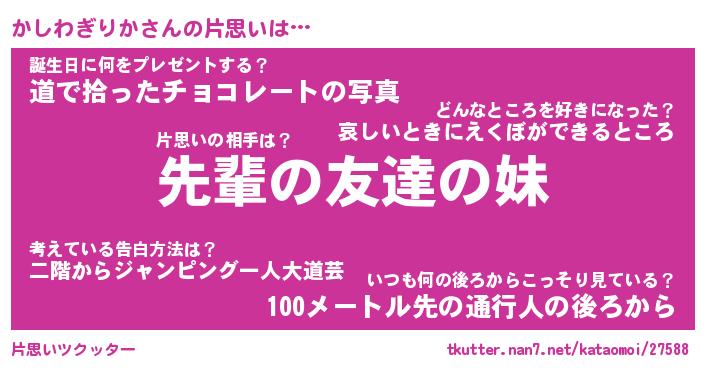 | ヘコむあだ名 | 『かしっふぃ~』『豆乳』『かしお』 |