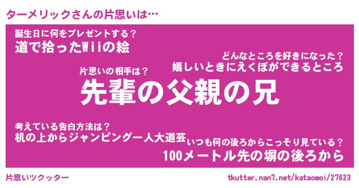 | ヒーロー風カッコイイあだ名 | 『スーパーターメリック』『魔戒騎士ター』 |