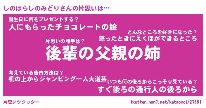 | 意味不明あだ名 | 『ペロリンしのはらしのみどり』 |