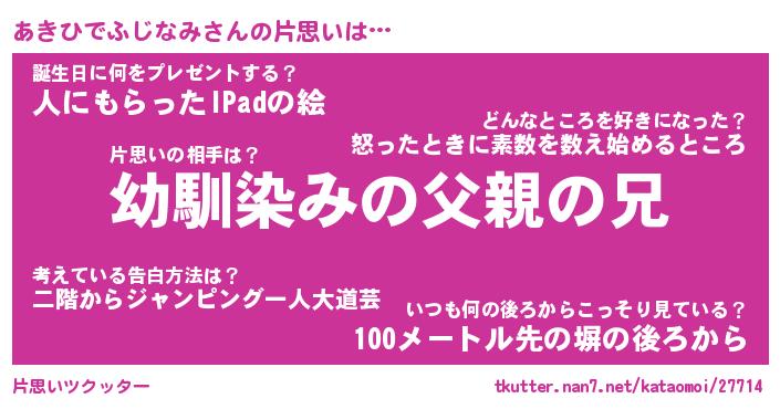 | 男性向けラノベタイトル風あだ名 | 『あきひでふじなみの憂鬱』 |