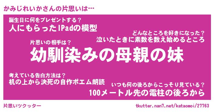 | 胡散臭い通販商品みたいなあだ名 | 『必ず成功するブレスレット…その名も「かみじれいか」』 |