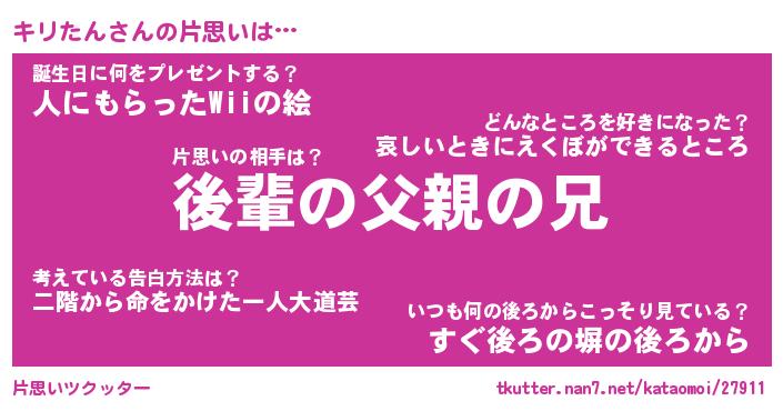 | 意味不明あだ名 | 『ペロリンキリたん』『永久保存キリたん』 |