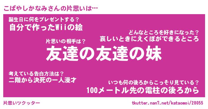 | ヘコむあだ名 | 『こばっふぃ~』『牛乳』『こばお』 |