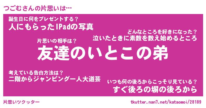 | ヘコむあだ名 | 『つごもー』『酢こんぶ』『つご太郎』 |