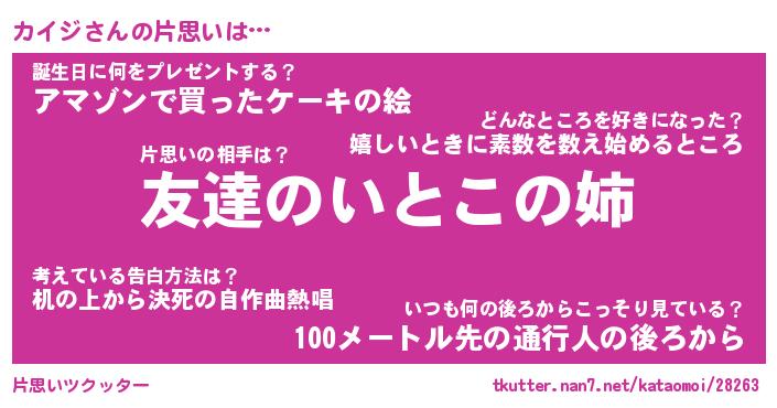 | ヘコむあだ名 | 『カイもー』『なまこ酢』『カイお』 |