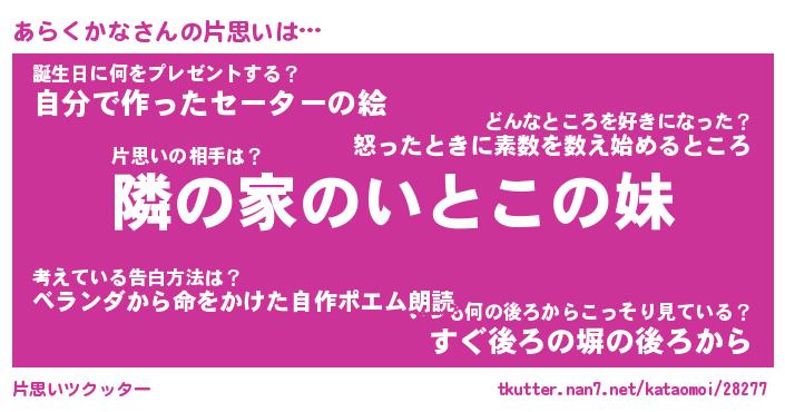 | 男性向けラノベタイトル風あだ名 | 『あらくかなの憂鬱』 |