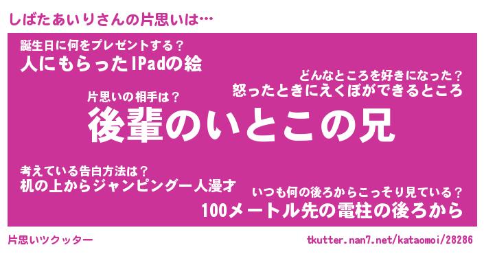 | 胡散臭い通販商品みたいなあだ名 | 『モテモテ間違いなし霊験あらたかなお札…その名も「しばたあいり」』 |