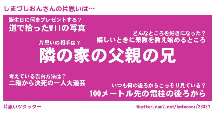 | 男性向けラノベタイトル風あだ名 | 『しまづしおんの憂鬱』 |