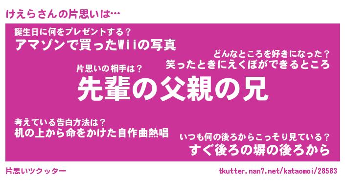 | ヘコむあだ名 | 『けえにゅー』『なまこ酢』 |