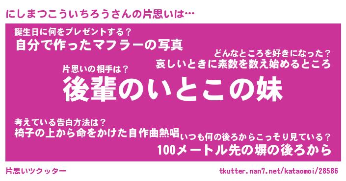 | ヘコむあだ名 | 『にしもー』『つくし』『にし太郎』 |