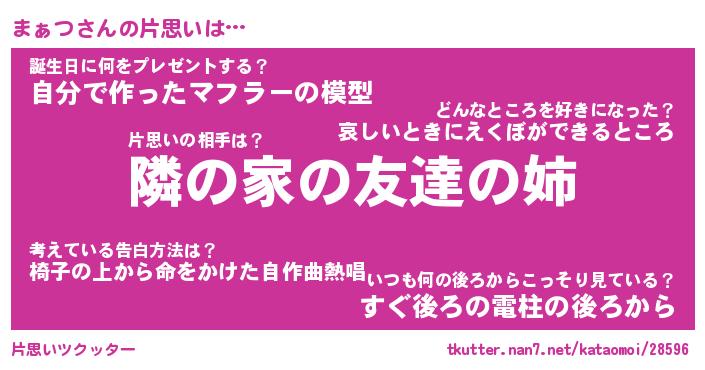 | 男性向けラノベタイトル風あだ名 | 『まぁつの憂鬱』 |