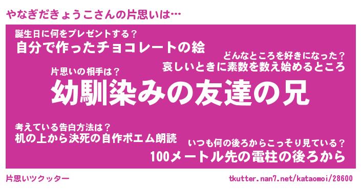 | 男性向けラノベタイトル風あだ名 | 『やなぎだきょうこの憂鬱』 |