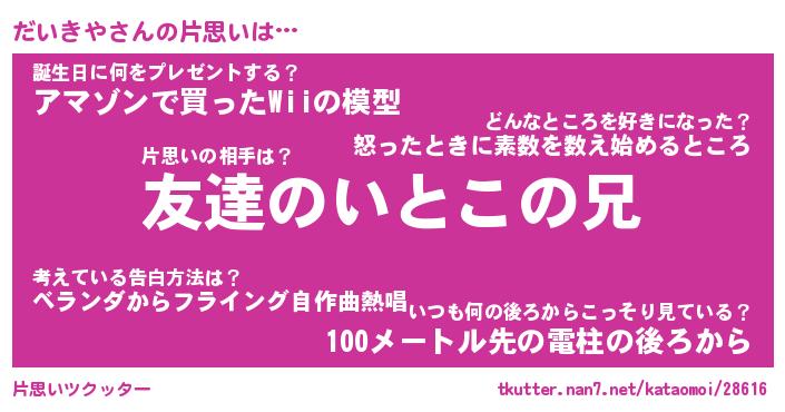 | 意味不明あだ名 | 『ペロリンだいきや』『永久保存だいきや』 |