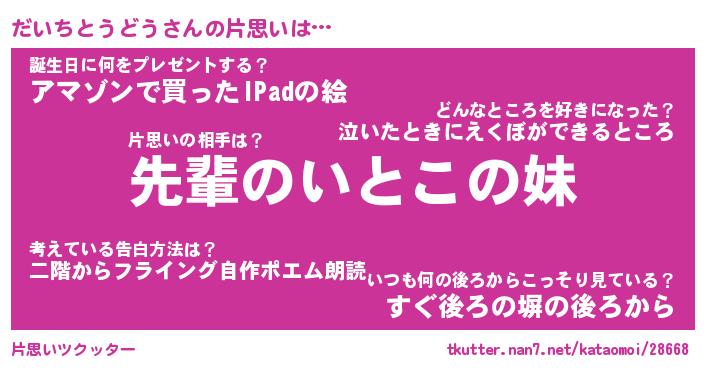 | ヘコむあだ名 | 『だいにゅー』『酢こんぶ』 |