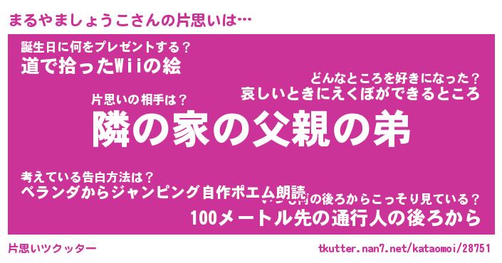 | 胡散臭い通販商品みたいなあだ名 | 『必ず成功するブレスレット…その名も「まるやましょうこ」』 |