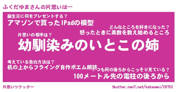 | 男性向けラノベタイトル風あだ名 | 『ふくだゆまの憂鬱』 |