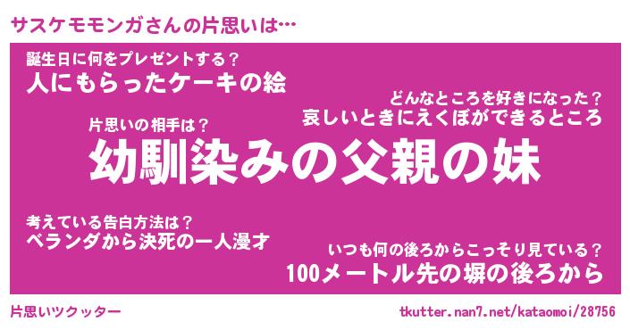 | 男性向けラノベタイトル風あだ名 | 『サスケモモンガの憂鬱』 |