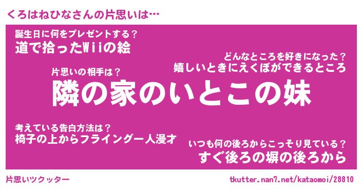 | 胡散臭い通販商品みたいなあだ名 | 『モテモテ間違いなし霊験あらたかなお札…その名も「くろはねひな」』 |