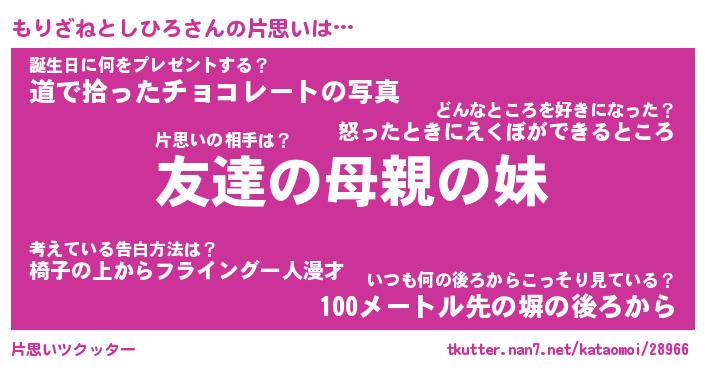 | 女子向けラノベタイトル風あだ名 | 『誰かこのもりざねとしひろを説明してください! ~契約から始まるウェディング~』 |