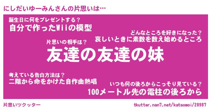 | 肩書あだ名 | 『にしだいゆーみん御曹司』 |