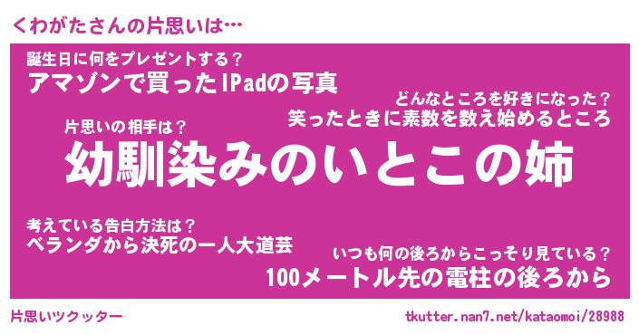 | ヘコむあだ名 | 『くわもー』『酢こんぶ』『くわっ子』 |
