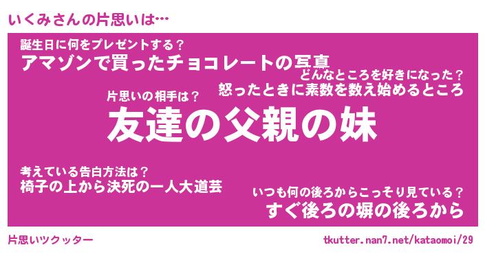 | ファンタジー風あだ名 | 『イクフェル』『エターナルイクミー』 |