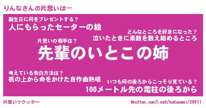 | ヘコむあだ名 | 『りんもー』『酢こんぶ』『りんお』 |