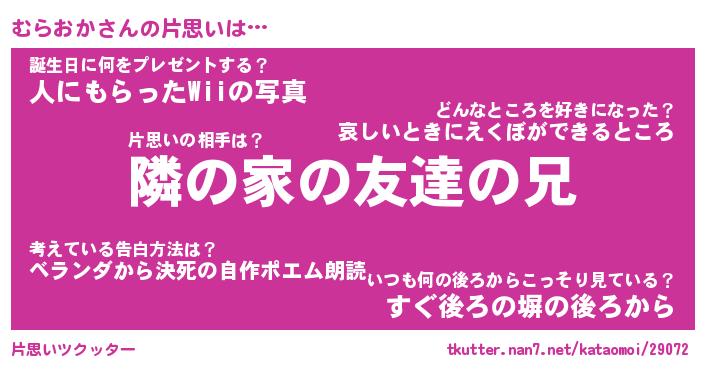 | ヘコむあだ名 | 『むらっふぃ~』『なまこ酢』 |