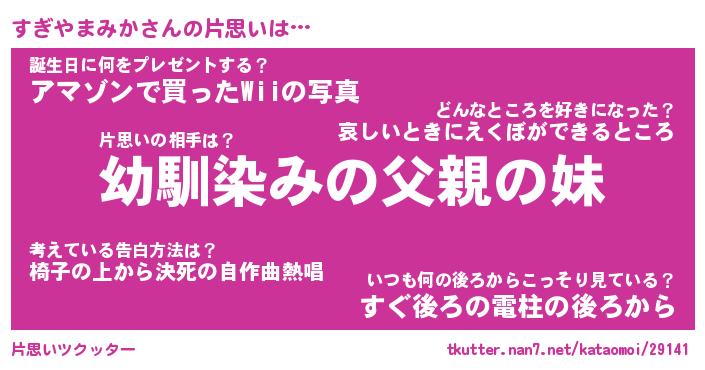 | ヘコむあだ名 | 『すぎにゅー』『なまこ酢』 |