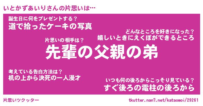 | 胡散臭い通販商品みたいなあだ名 | 『モテモテ間違いなし水晶球…その名も「いとかずあいり」』 |